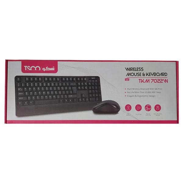 کیبورد و موس بیسیم Tesco TKM7022W با اتصال 2.4 گیگاهرتز، طراحی کم صدا و موس اپتیکال 1000 DPI، بهترین گزینه برای کارهای روزمره و اداری با کارایی بالا و راحتی استفاده.